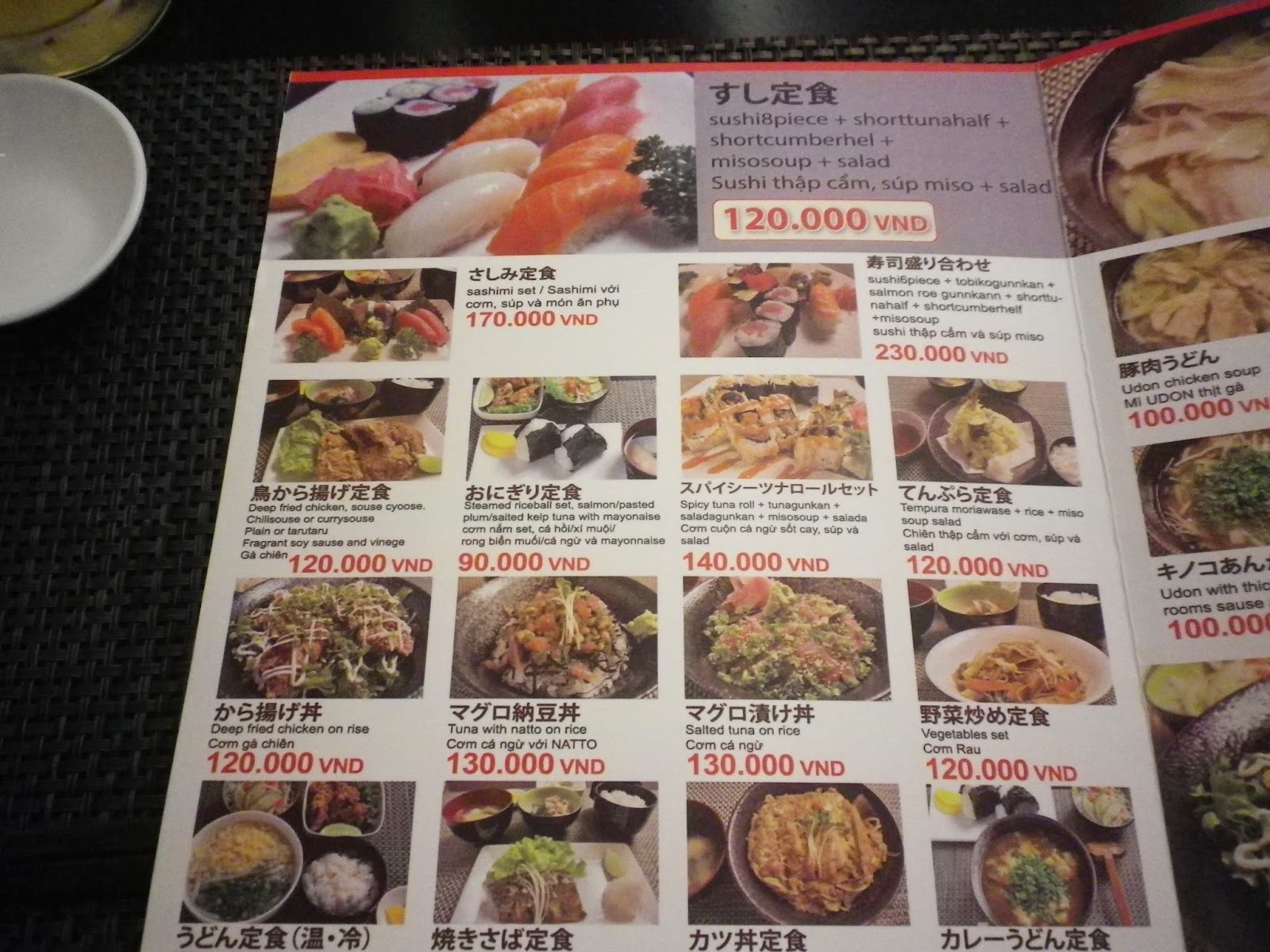 ランチの寿司定食120,000VNDベトナムドン(約600円)にしました。