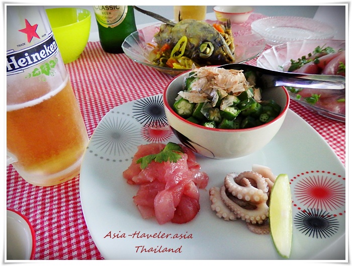 タイ自炊生活#116のタコの手前のお造りが、この中落ちなんです