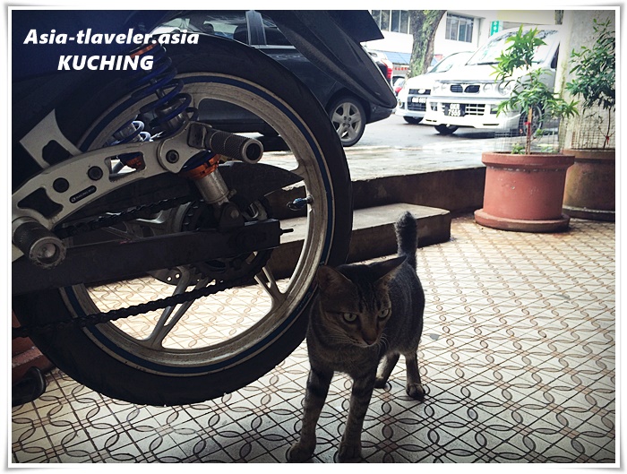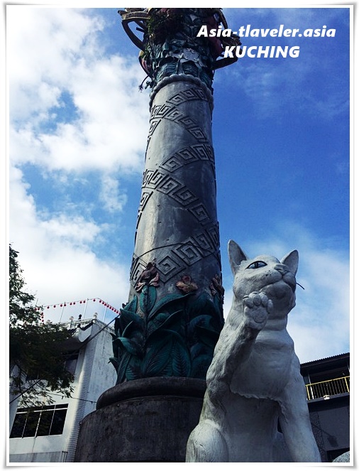 麺新茶室からてくてく歩くと、また違う猫像。クチンは本物のにゃんこより猫像の方がインパクト大