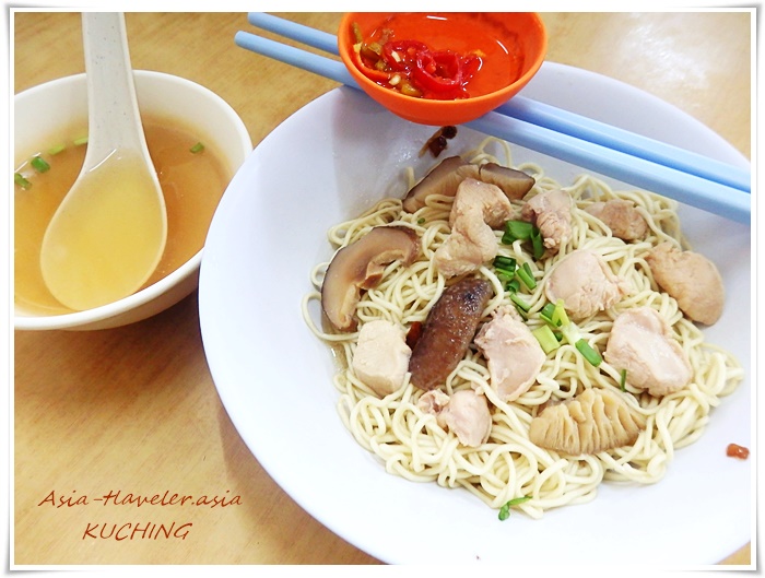 クチン名物の哥羅麺Kolo Meeの麺に、マッシュルーム&チキントッピングでさっぱりいただける一杯