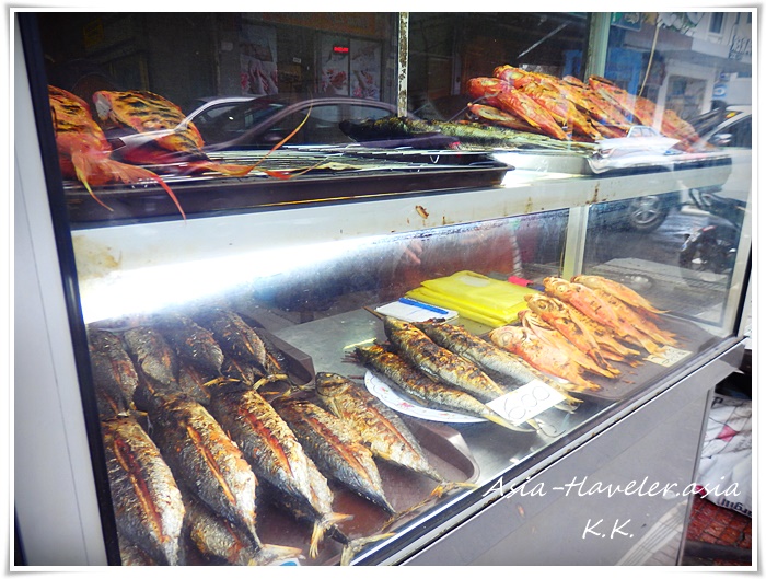 ビールを追加したからにはおつまみも必要!と、店頭で焼いている魚をセレクト。価格表示があり小さい魚だとRm1.5~。オーダーすると焼き直してくれ熱々が登場します