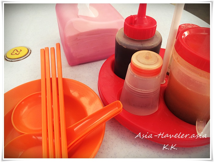 食べたいものをオーダーし空いている席に座ると、カスターセットと、箸レンゲなどを置いていれます