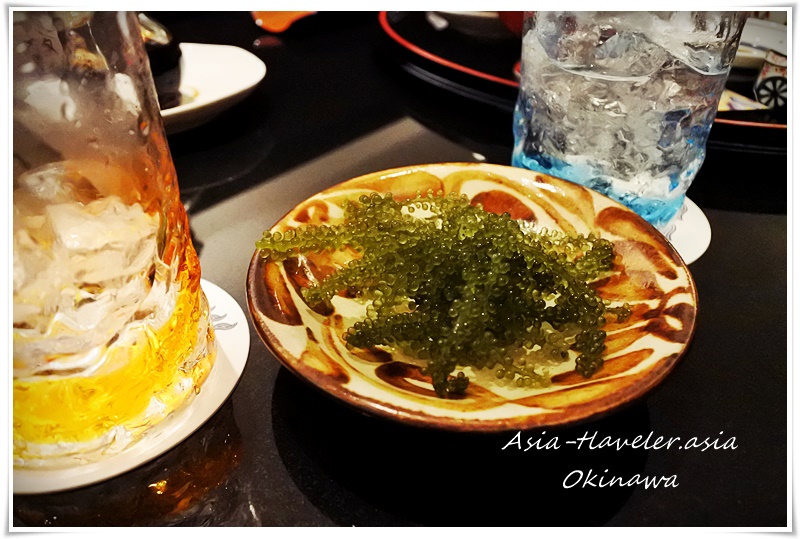 『サービスです』と、板さんが海ぶどうを出してくださいました