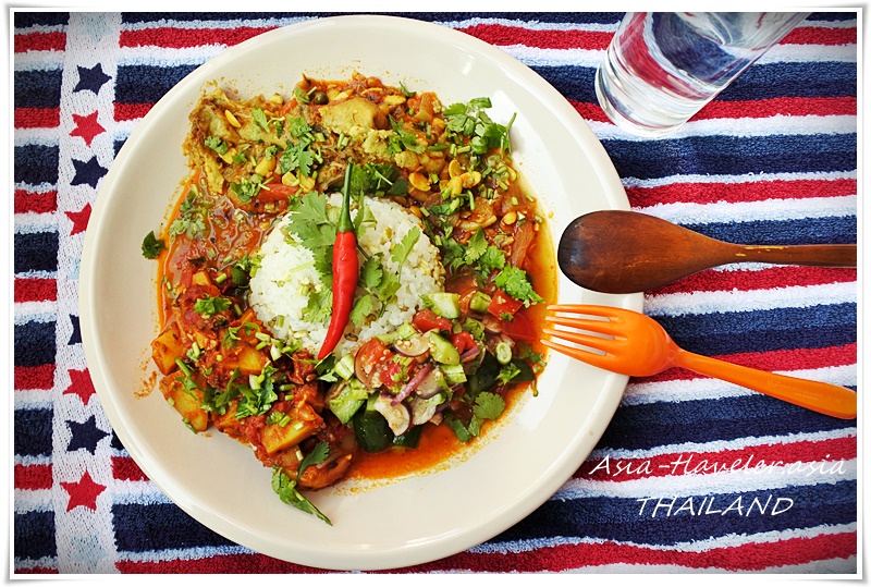 前夜の残り物をワンプレートに盛り簡単に済ませるのですが、外でタイの麺の朝ごはんもイイもんですね!