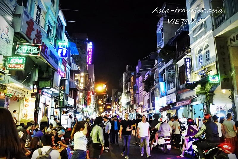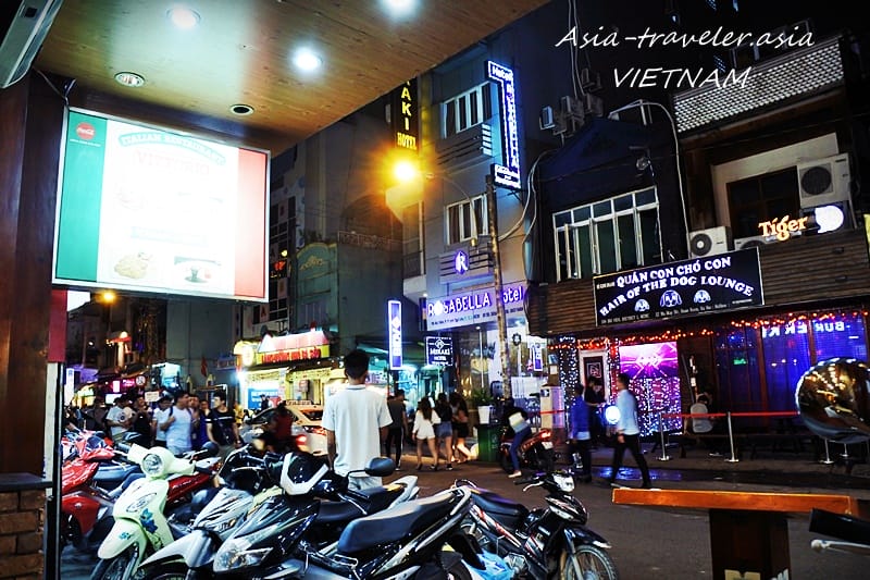 大音量の音楽が流れているブイビエン通りを行き交う人々を眺めながら