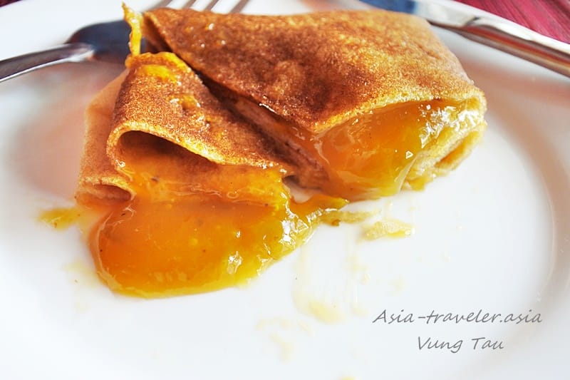 じゃがいもを使ったクレープの中に甘さ控えめ自家製マンゴージャムが包まり、店主が『全て自分で作ったんだよ!』と人柄が良いのが伝わる笑顔で説明してくれました