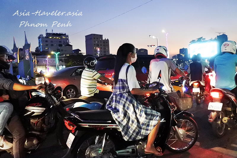 そんなプノンペンの夕暮れ時は多少の渋滞もありますが、Grab(アプリ配車)のトゥクトゥクならば小回りが利き隙間を掻い潜り目的地を目指してれストレスは無し