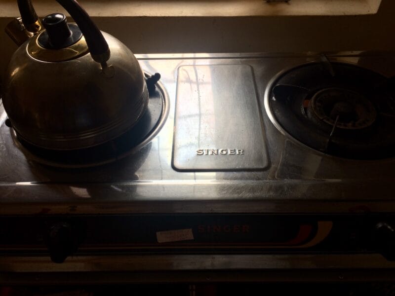 ガスレンジはSINGER、スリランカの看板でもこのメーカー割と見かける。