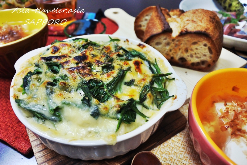 お供に鱈とほうれん草のグラタン(ポテト入り)を作ってみました