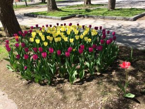 右側に一輪のチューリップがあって、まるで指揮者のようだ(ポテト詩人)