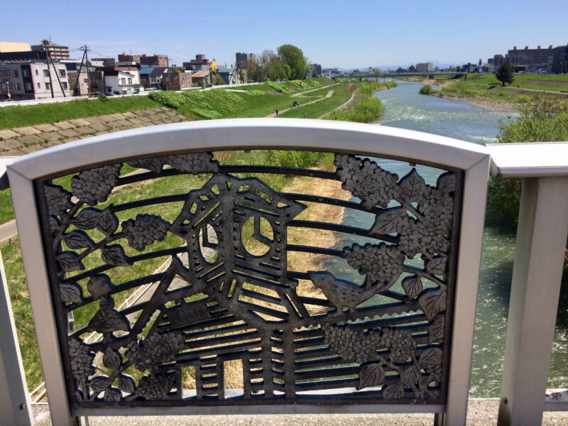 橋を渡ってみた。これは!?札幌時計台だ!晴れた堤防の緑をバックに撮ってみた。これもなかなか良いな。
