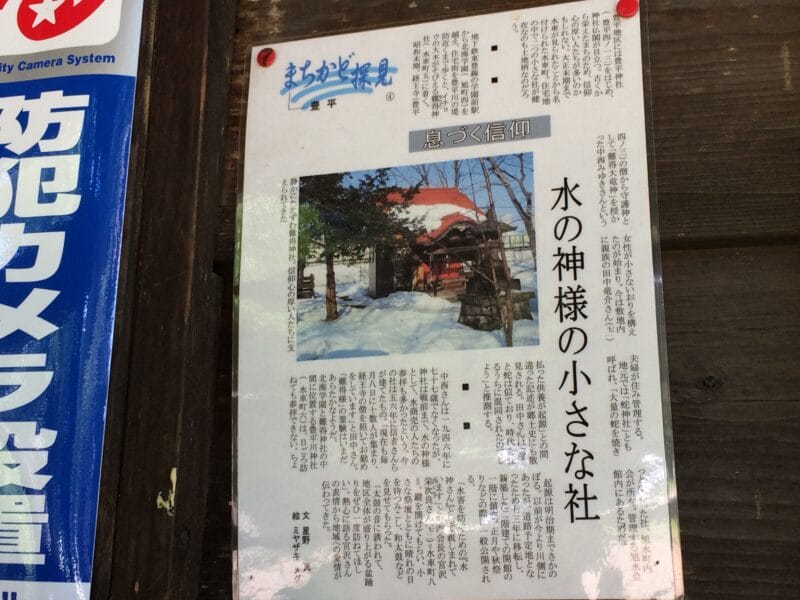 豊平地区には豊平神社をはじめ、 神社仏閣が目立つ。古くか ら栄えたまちのため、信仰心の厚い人たちが多いのか もしれない。大正末期まで 水車が見られたことから名付けられた水車町。住宅地の中で二つの小さな社が健在なのも土地柄なのだろう。