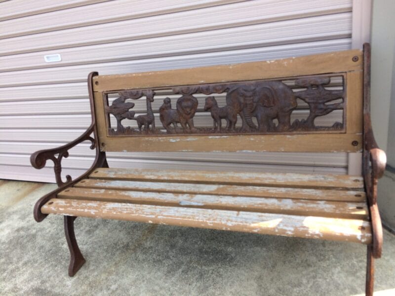 シャッター前にあったミニベンチの柄には動物。