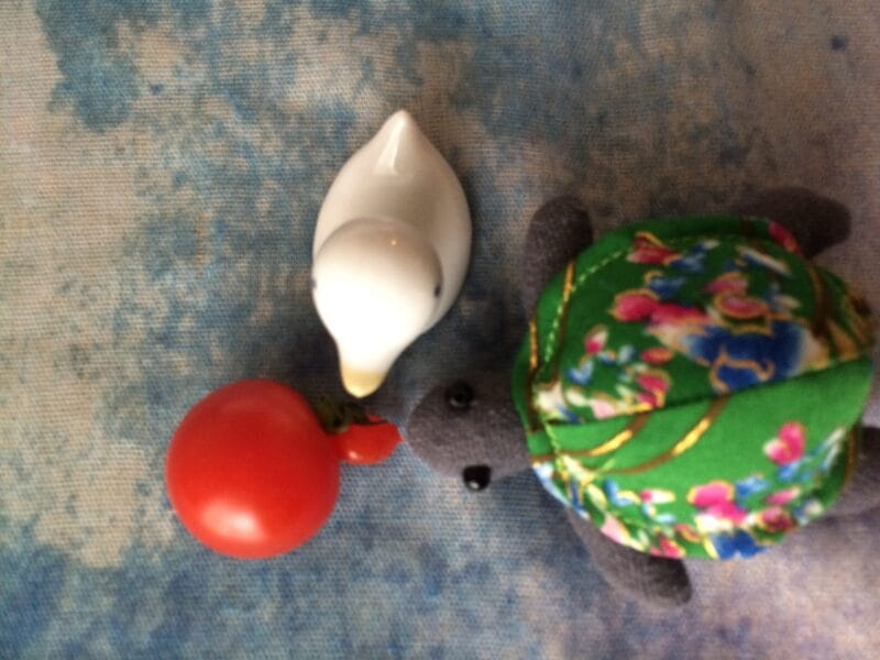 ひでぶーなミニトマトと栗を背負ったアヒル?