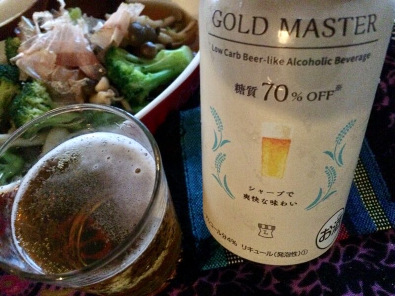 ローソンで買ったゴールドマスター。糖質70%オフなのに意外とうまかった。
