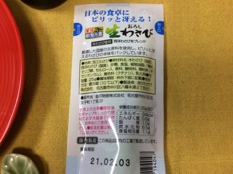 そう言えば、右。新しく見かけた商品のわさびも買ってみた↑