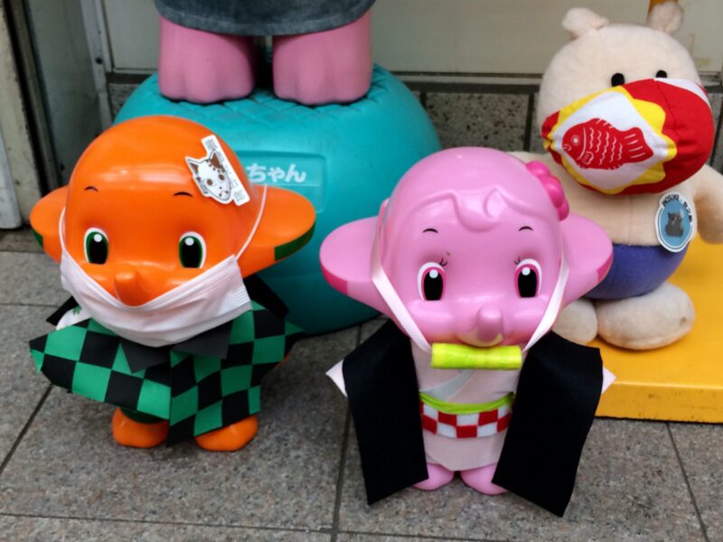 これ見た時、『正月バージョンだ!』と思って撮ったんだけど、改めてよく見ると巻物をくわえてる?ああ、あれか、きめつのなんとかって漫画のかもしれない。