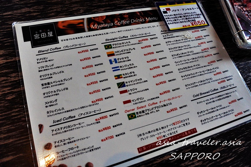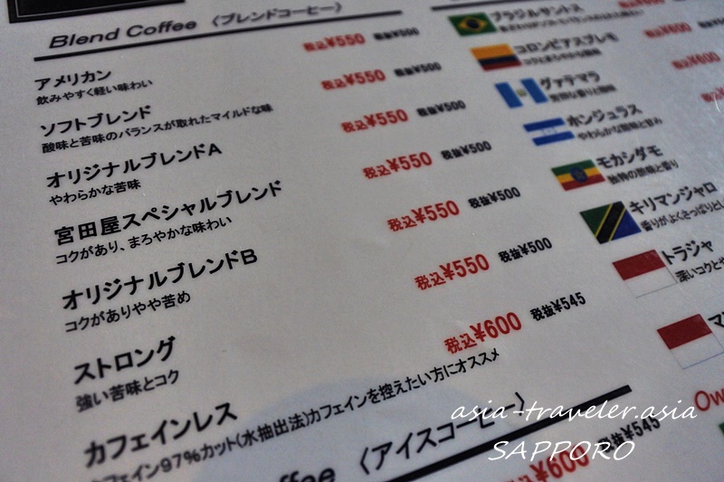 以前に訪れた宮田屋札幌ファクトリー店よりもストレート珈琲の種類が豊富