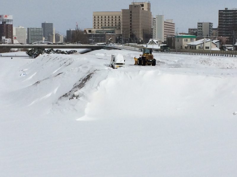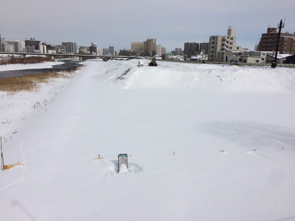 冬季期間中は豊平川沿いの一部河川敷は雪捨て場になるのだ。