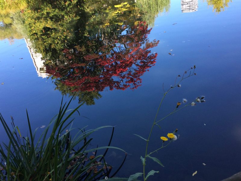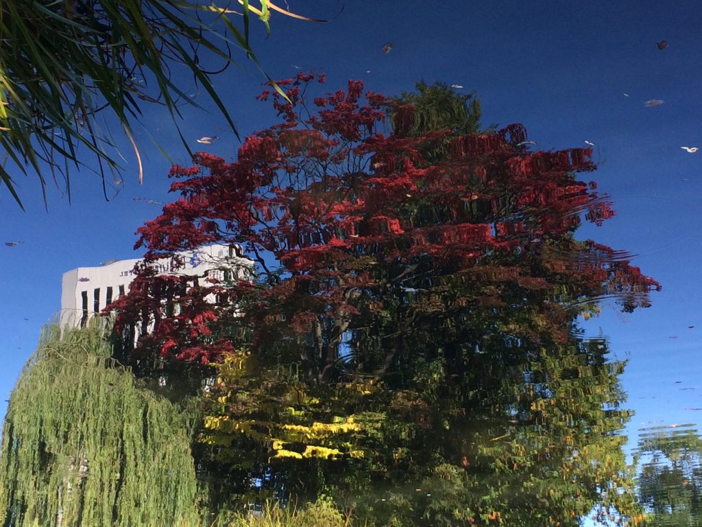実はこれ、水面にうつる紅葉なんですよ!?よ〜く見てみましょう↑