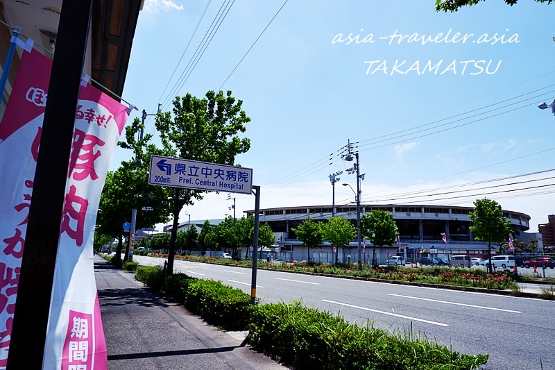 三叉路のもう一方は打って変わり、高松競輪も見える幹線道路