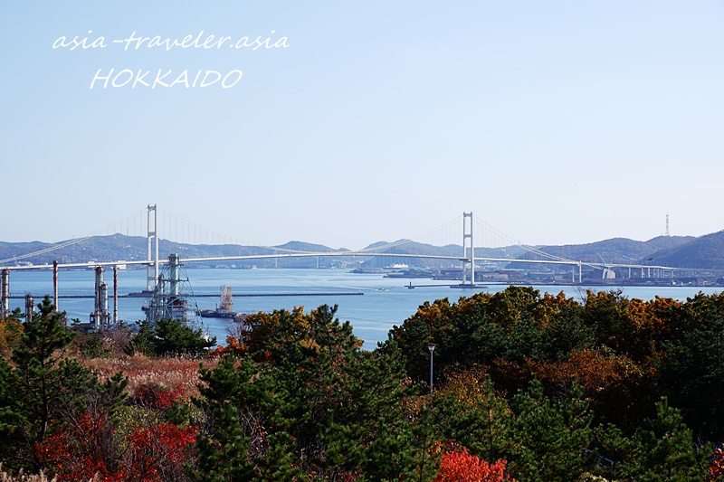 室蘭のシンボルでもある東日本最大の吊り橋“白鳥大橋”を一望できるという