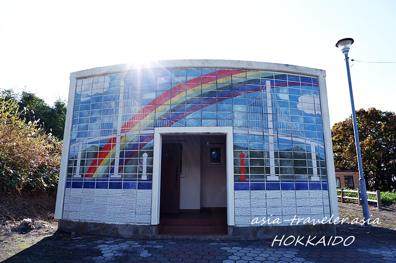 尚、白鳥大橋が描かれたトイレも併設され