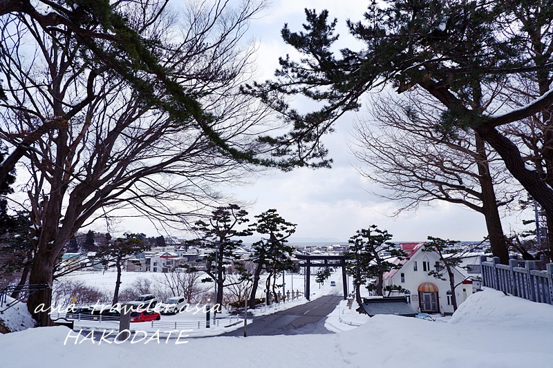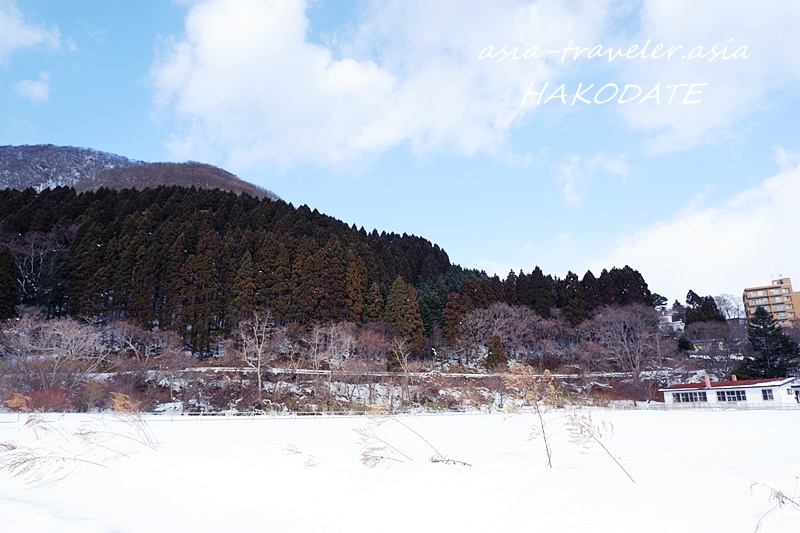 函館山の麓の函館公園はまだまだ雪が残る冬景色