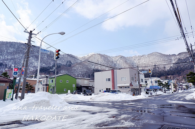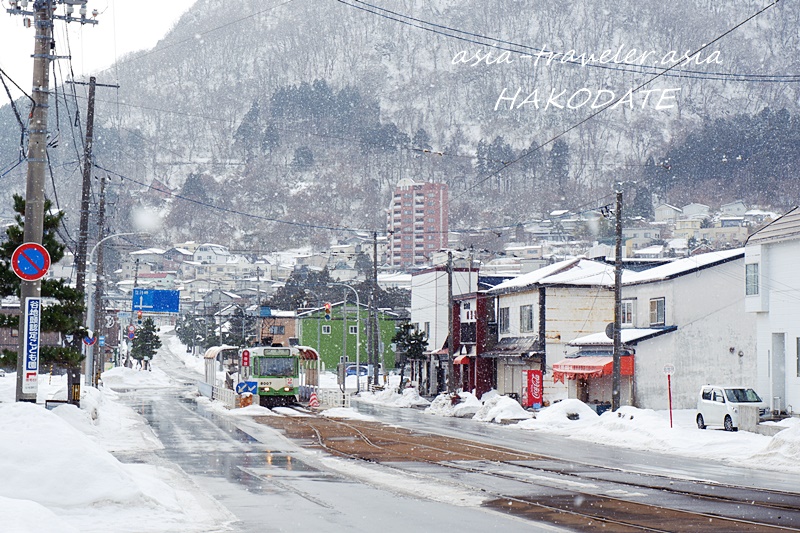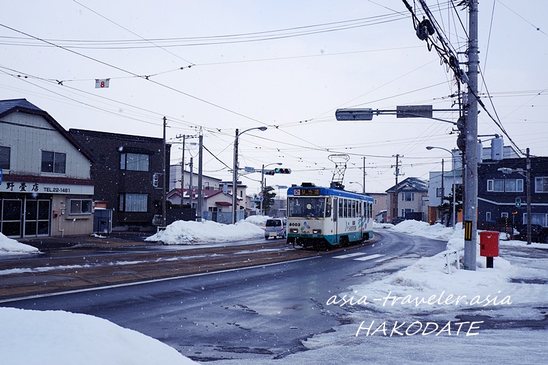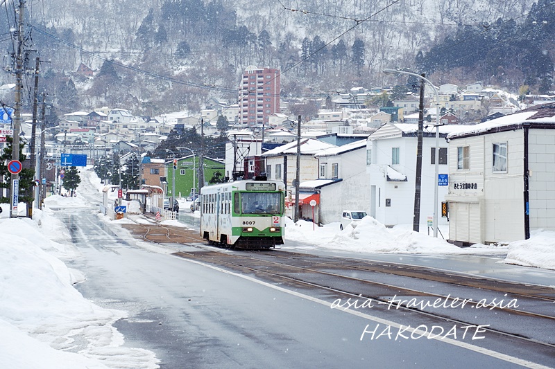 湯の川行きが走る姿を眺めつつ、歩く事10分強