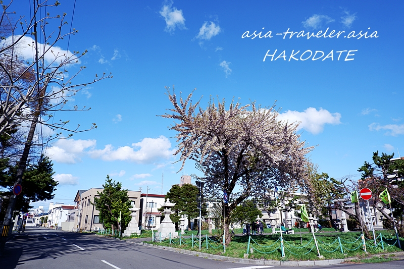 西へ向かえば坂の上に見える赤い鳥居が印象的な『函館護国神社』