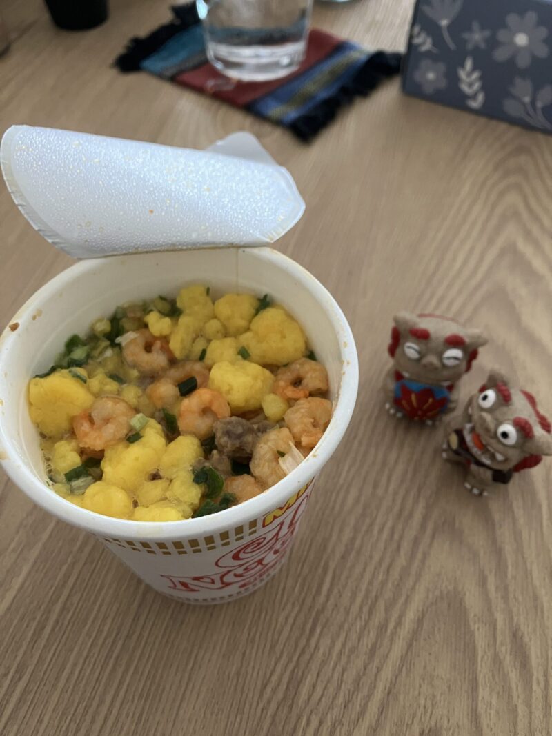さあ、朝は久々にカップヌードル食べて出発〜!