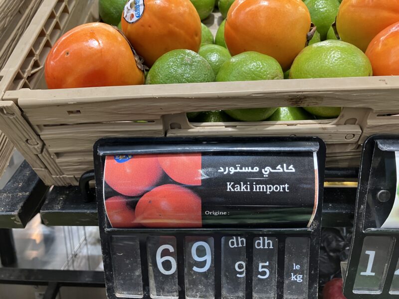 後でわかったのですが、モロッコの柿は種無しで大きく甘いらしい。これは輸入品だけど、場所によっては路上でもローカル産と思われる柿が並んでた。