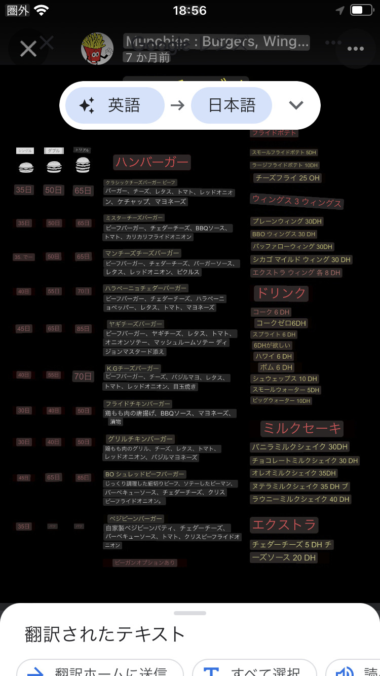 画像はグーグルレンズ翻訳した状態のスクリーンショット。