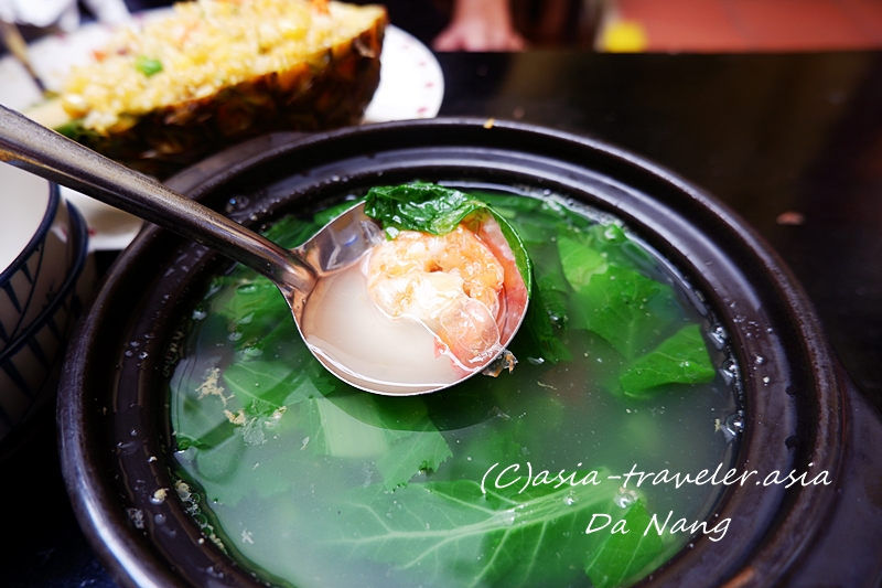 青菜たっぷりの海老入りスープはアッサリ系でミークアンにも炒飯とも相性抜群