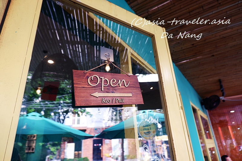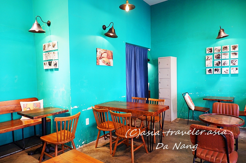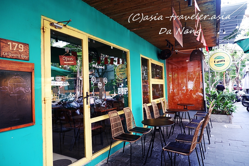 ターコイズブルーのファサードが目を引くおしゃれな店構えのバインミー専門店&カフェ