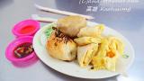 あっさりの粥と麺に、油たっぷりで焼いた玉子焼きが良く合います