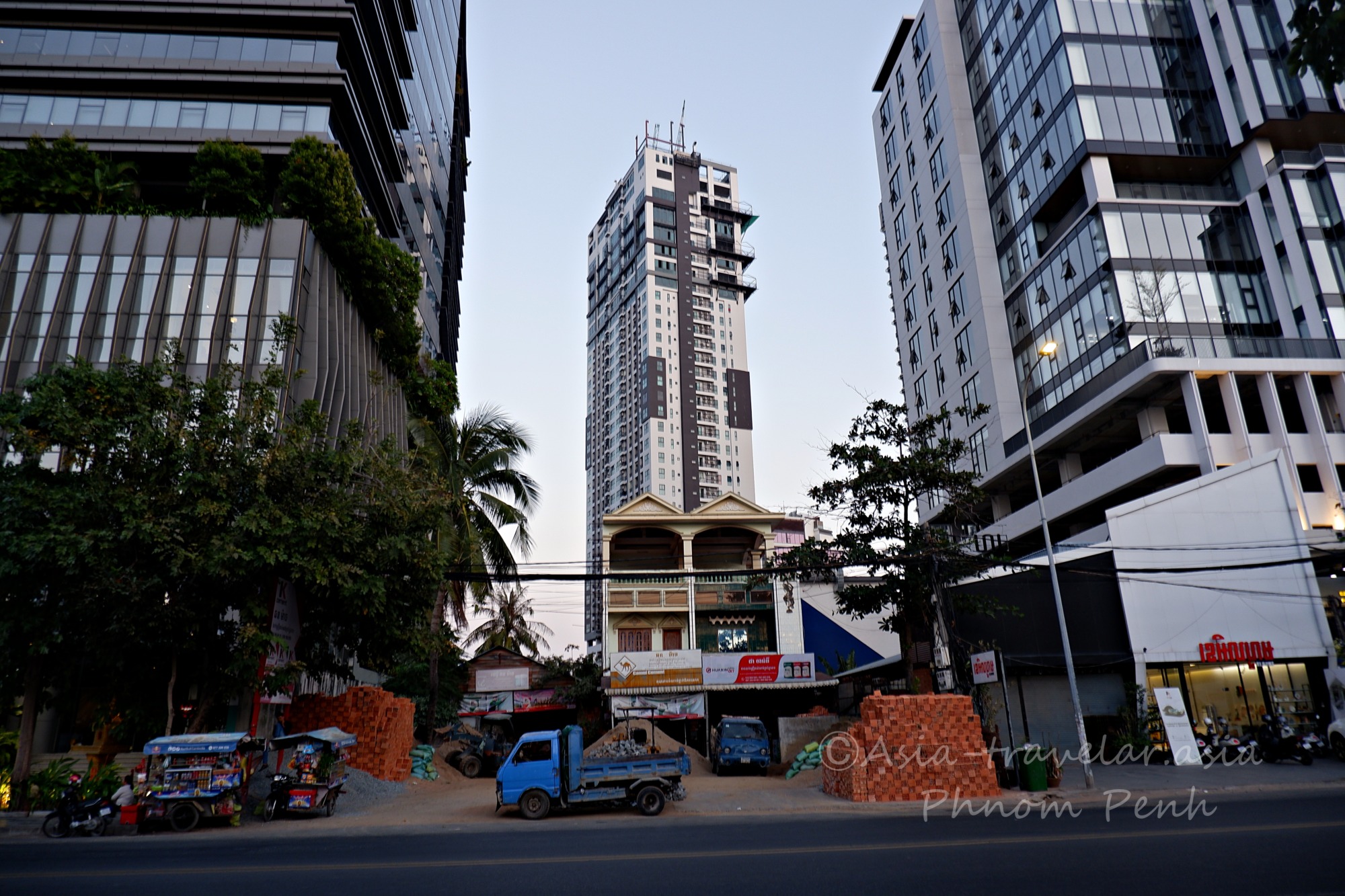 背の高いビルの下にはローカル屋台も並ぶエリア