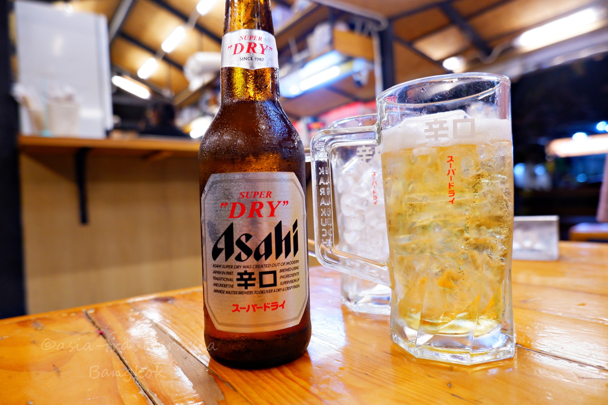 氷入りのジョッキに注ぐ点にタイ風情あり!
