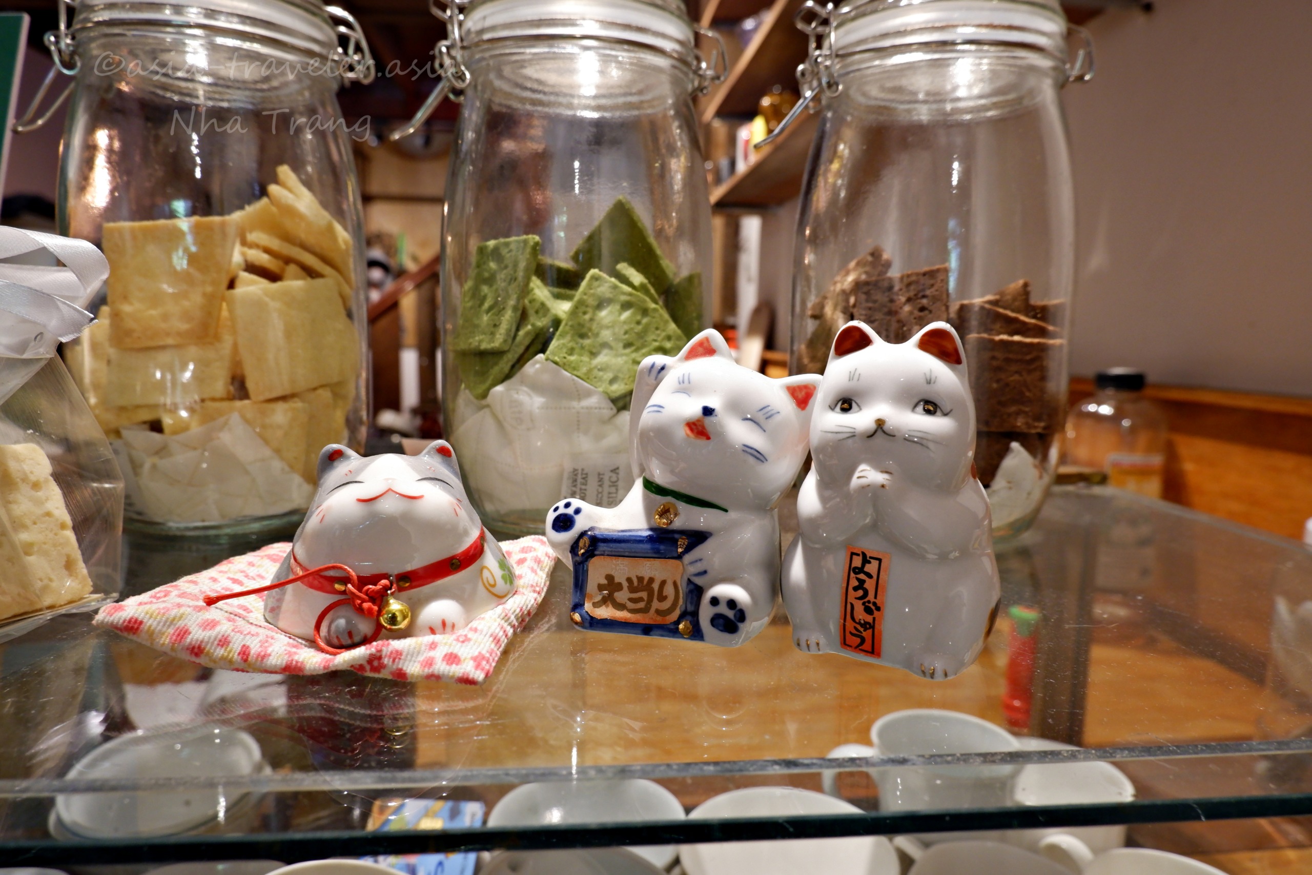 先払いのカウンターの隅に日本語付きの招き猫が並び、なんだか嬉しくなりました