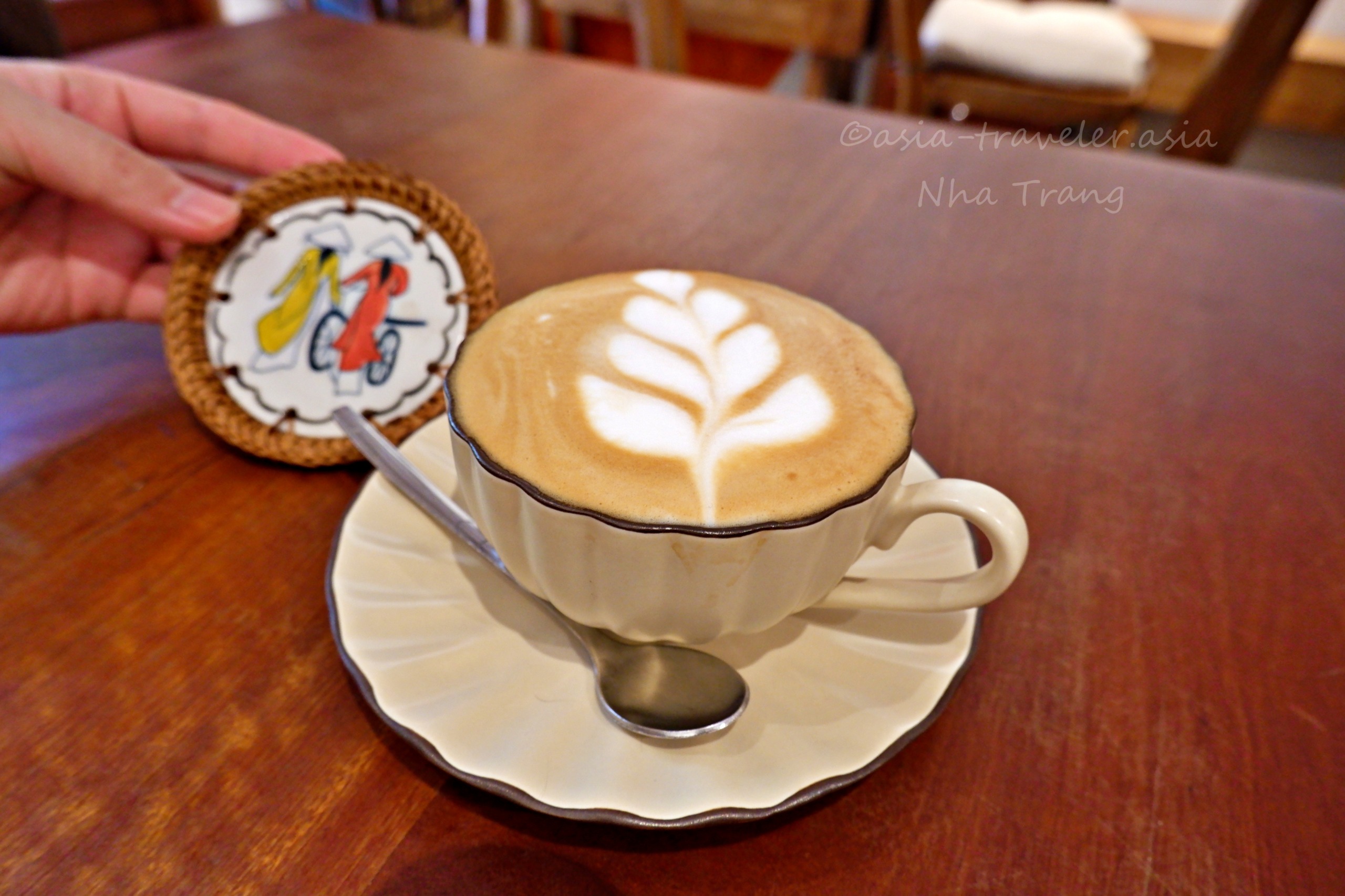 ラテアートも素晴らしく、またコースターにはベトナム風情あり