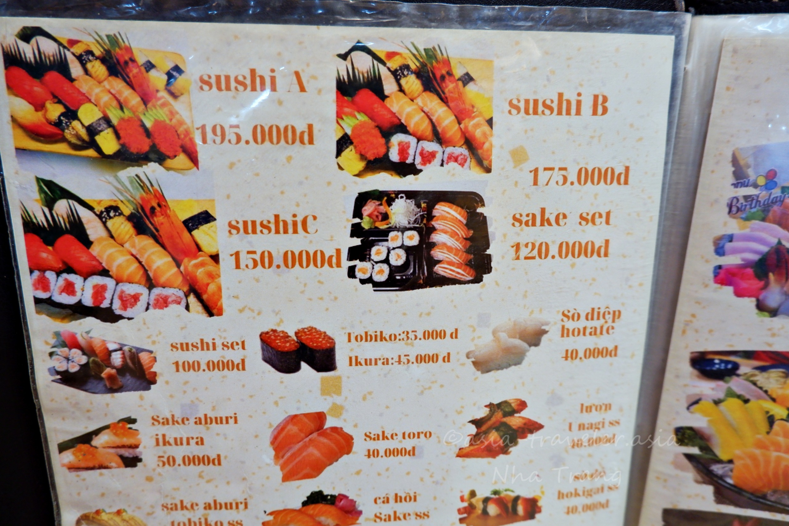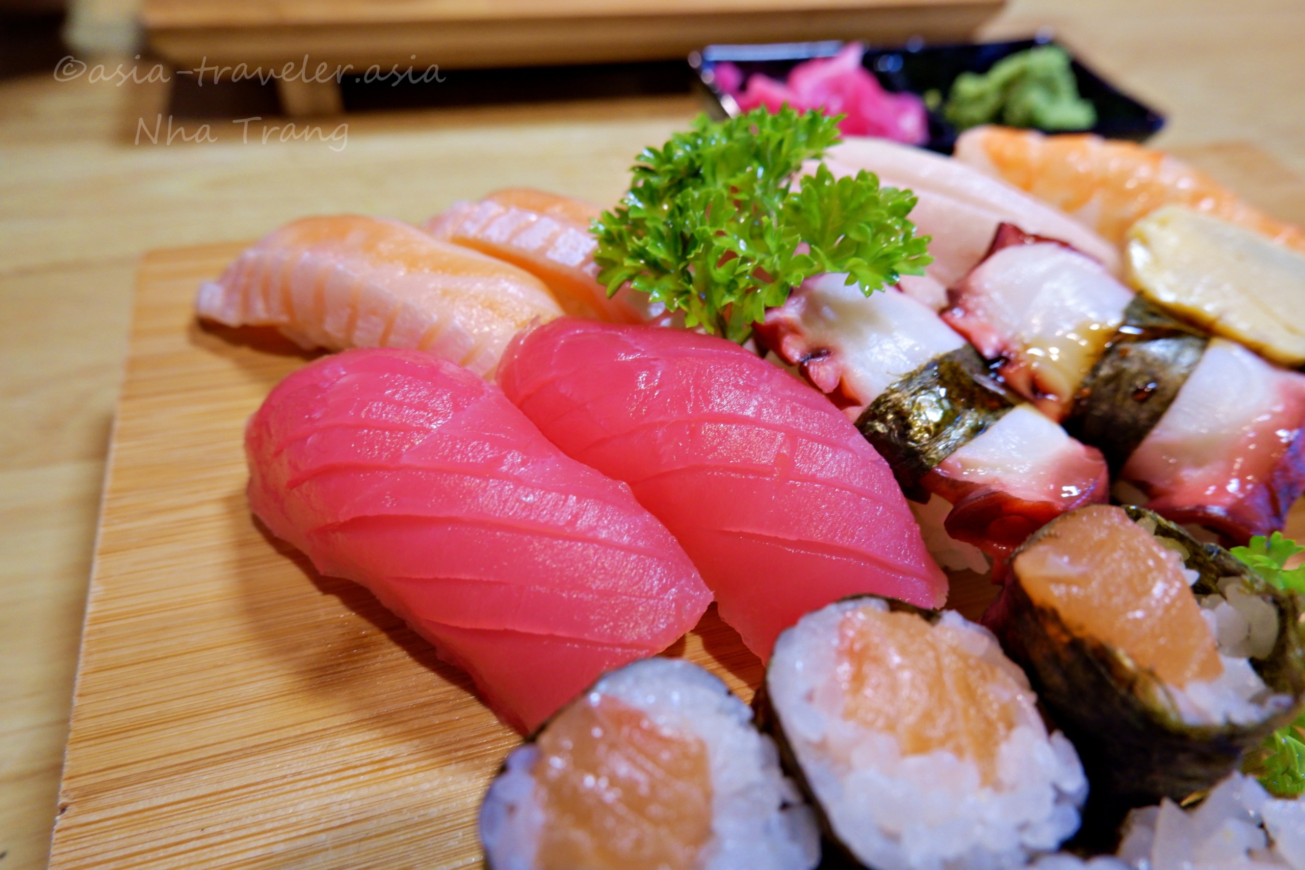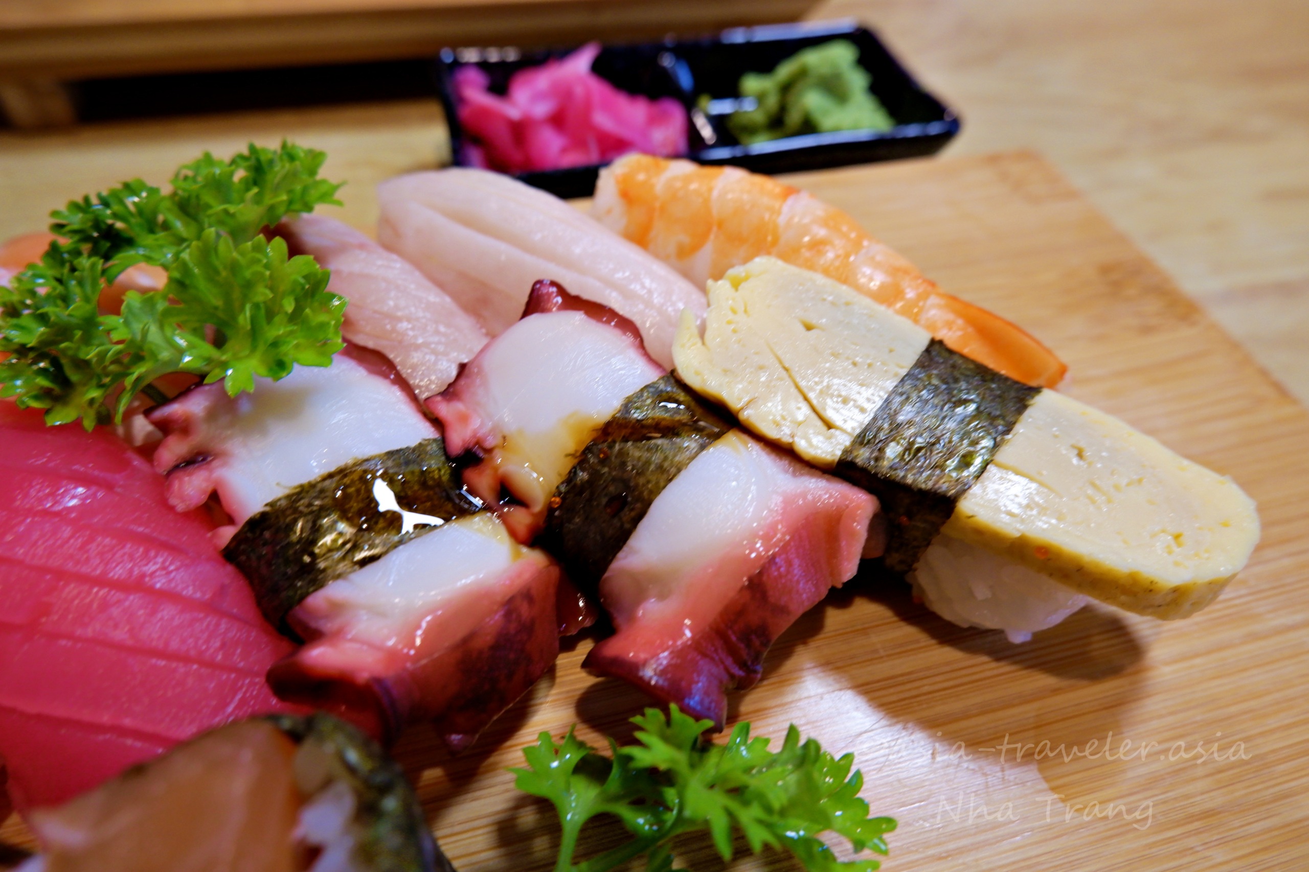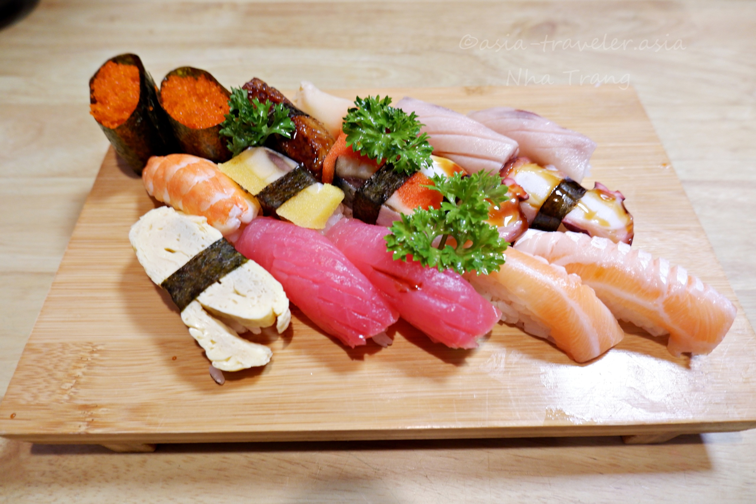 ここのお店は斬新さを狙うネタは特にないが、しっかり日本風のにぎり寿司になってた。ぴったりネタとシャリがくっついてたので逆さまにしても取れないお寿司。これからの日本風ベトナム流寿司にも期待です。” by相方談