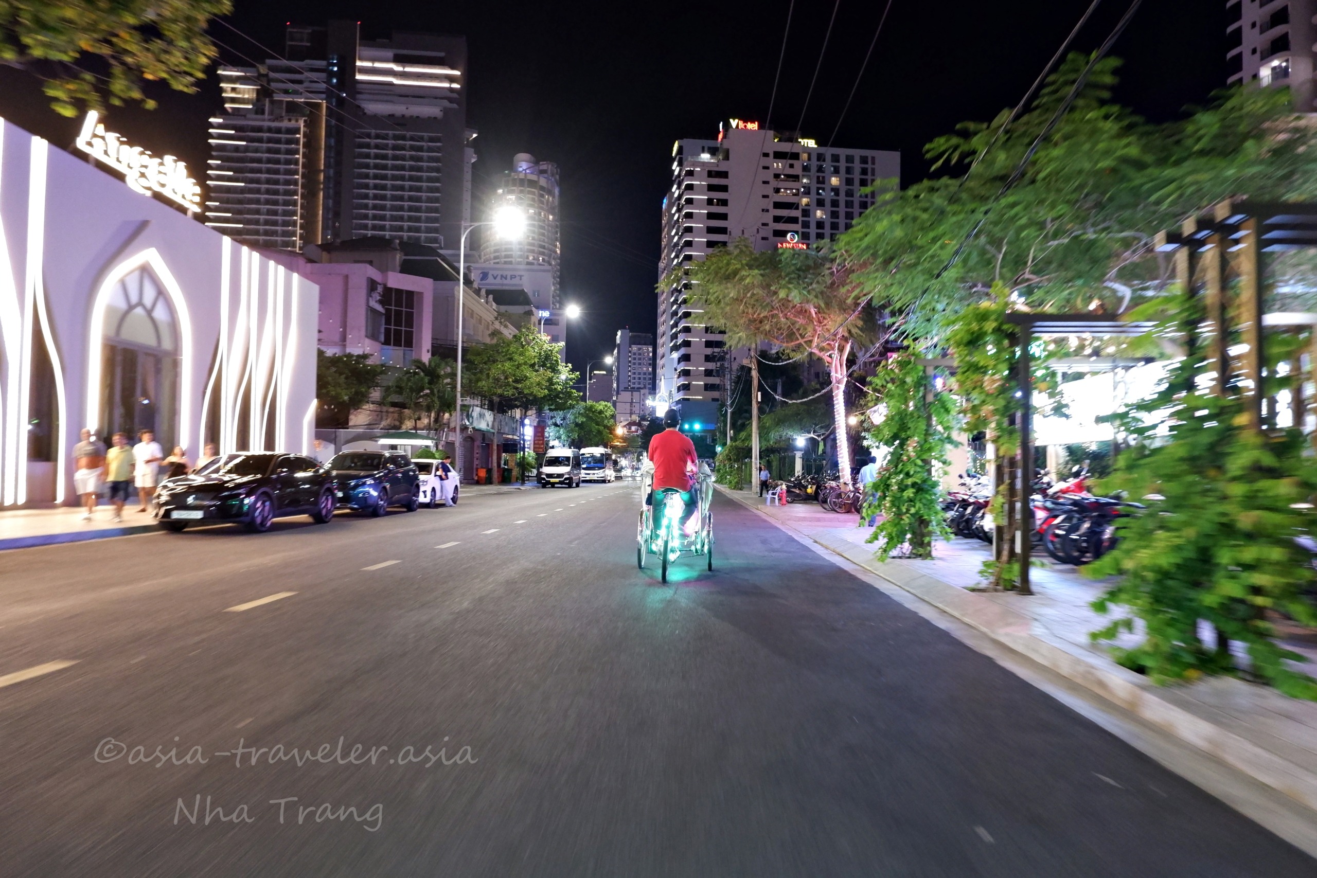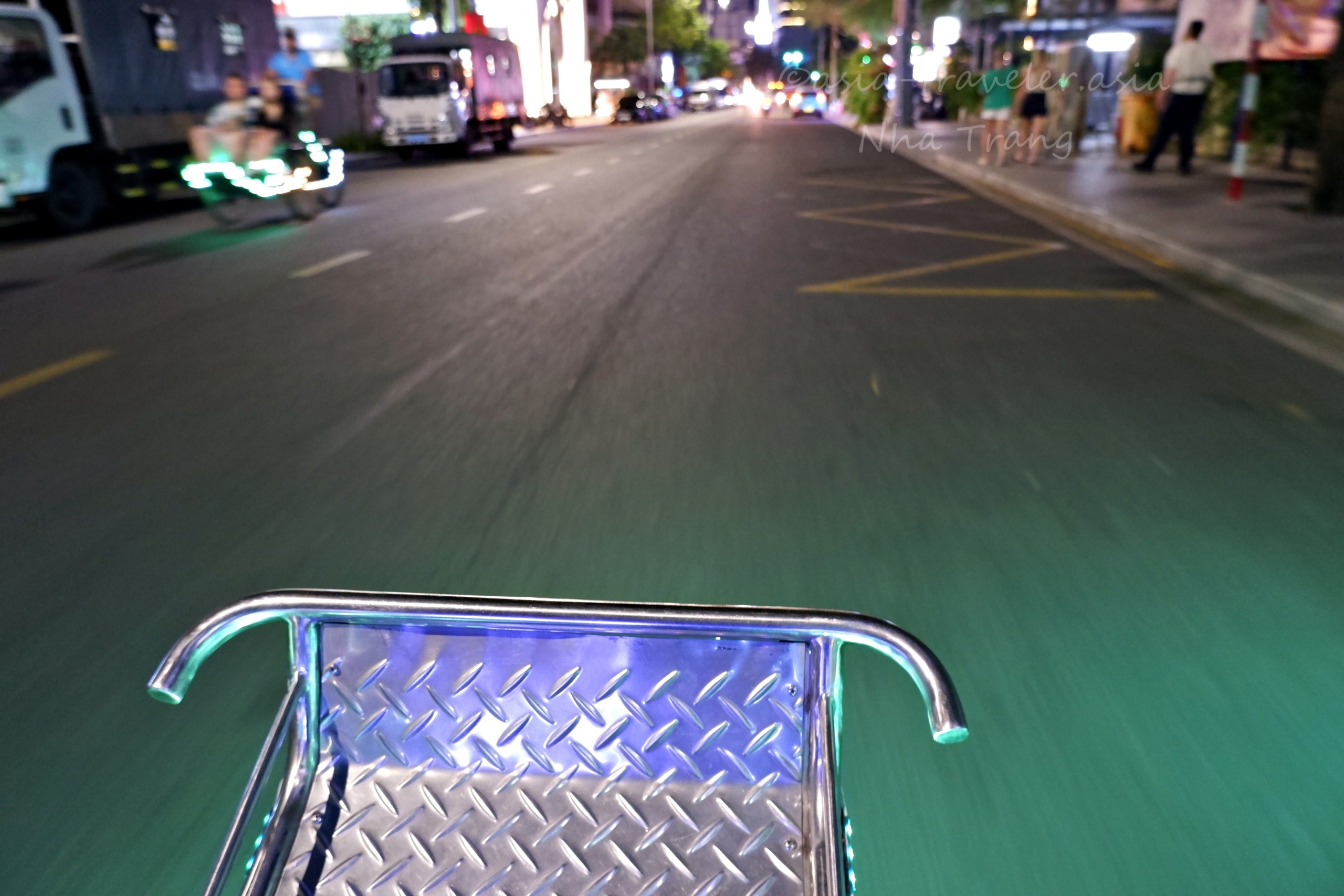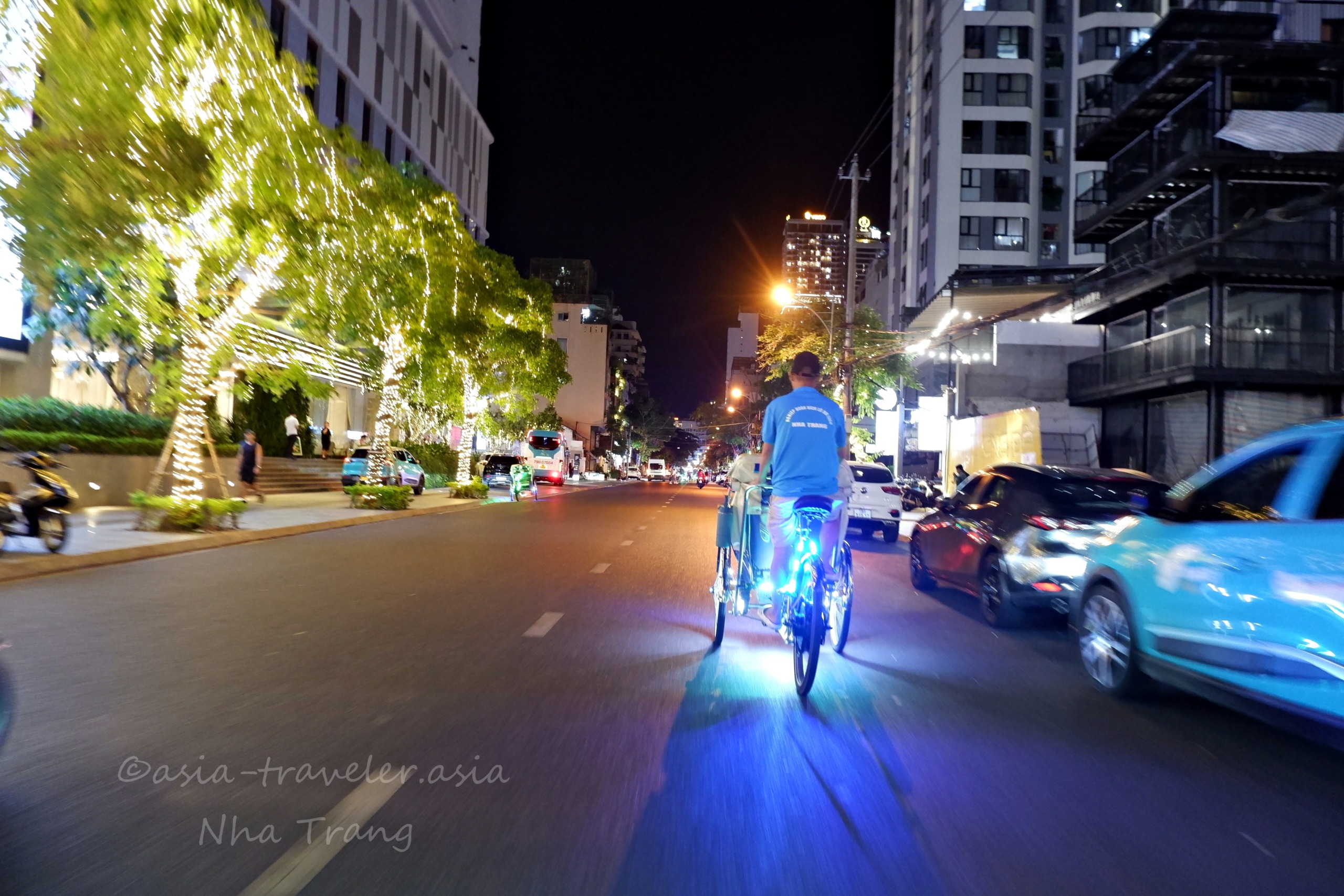 夜になるとライトアップするシクロはよく目立ち、どこでもすぐに見つけられます