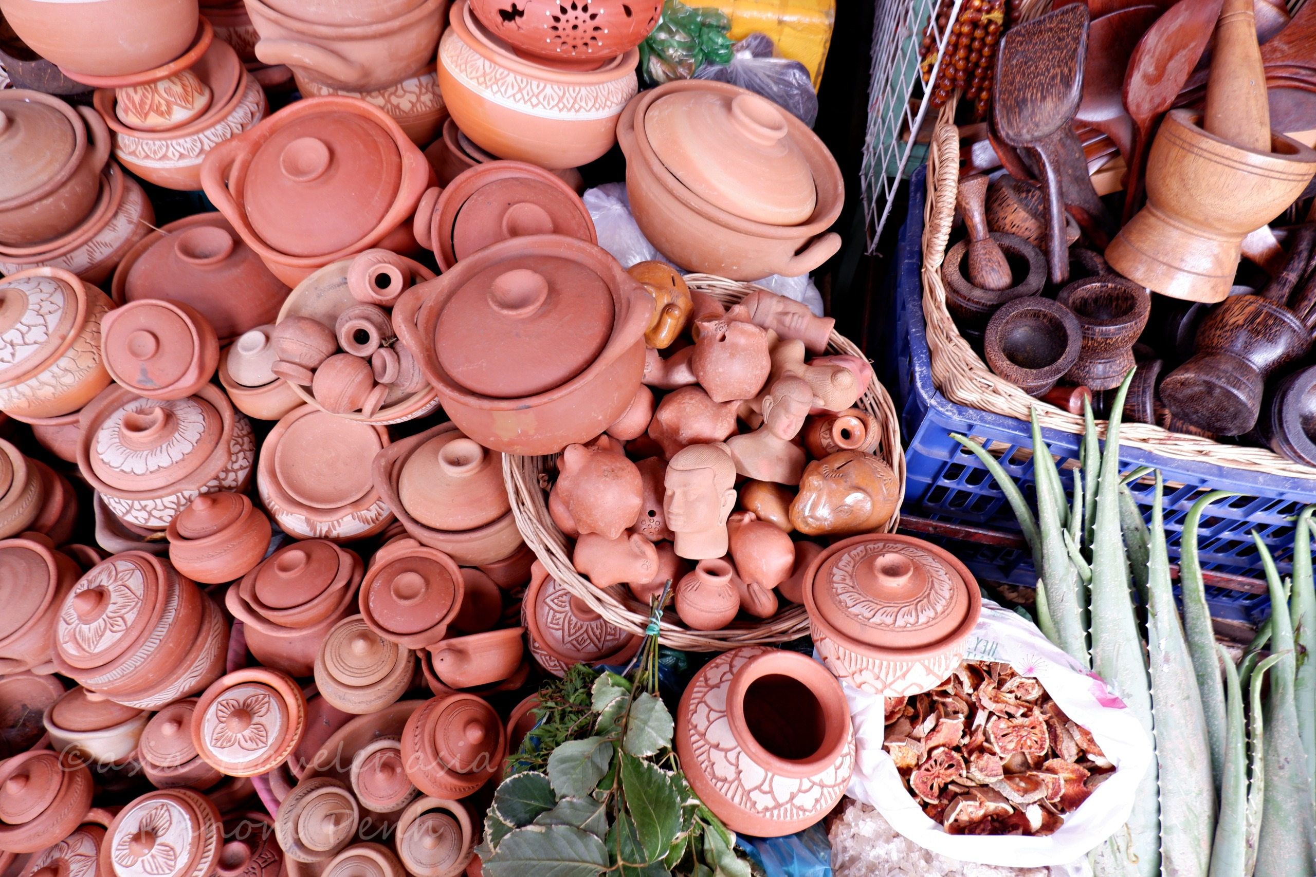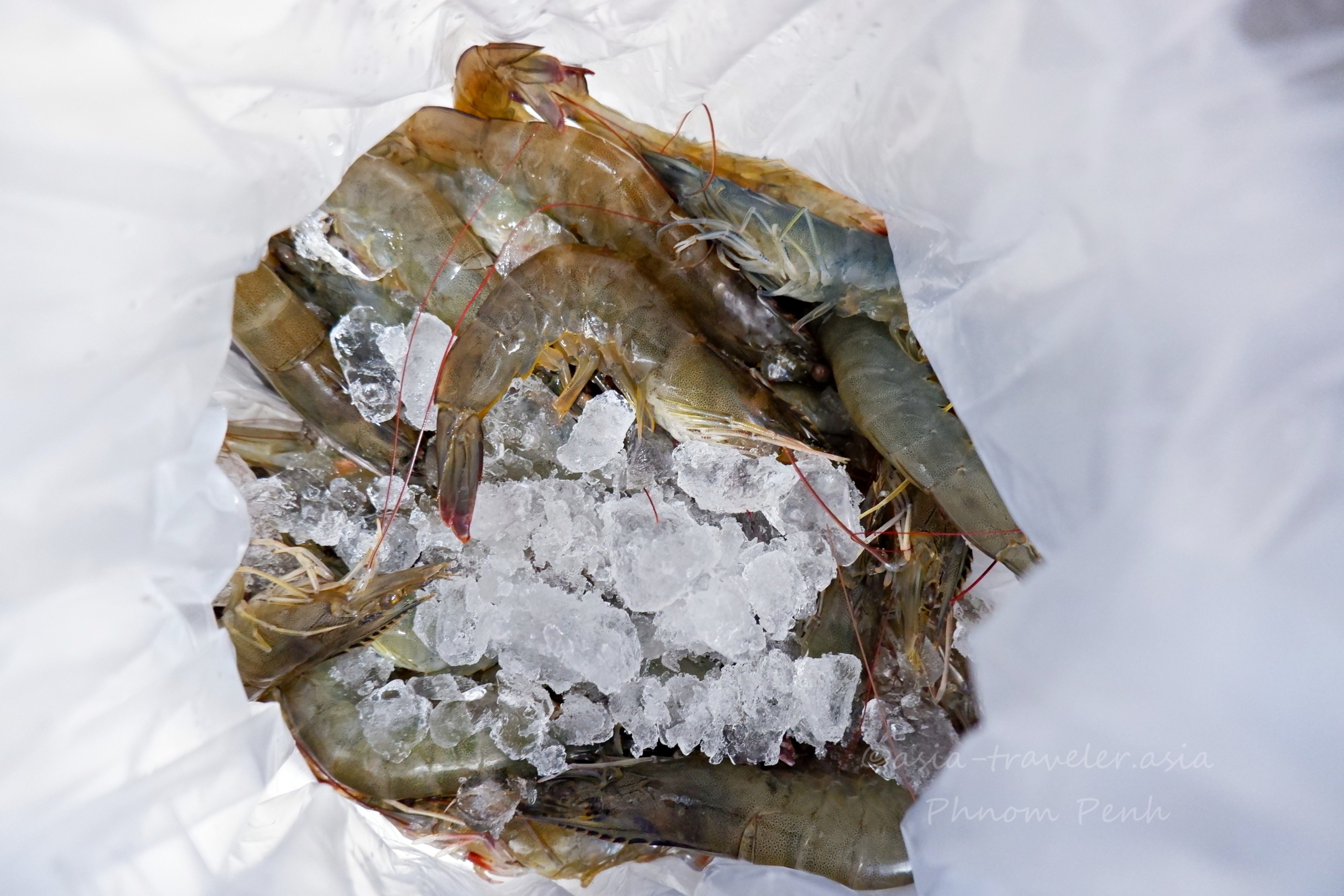 プノンペンのローカル市場では活きた海老や貝も手に入ります