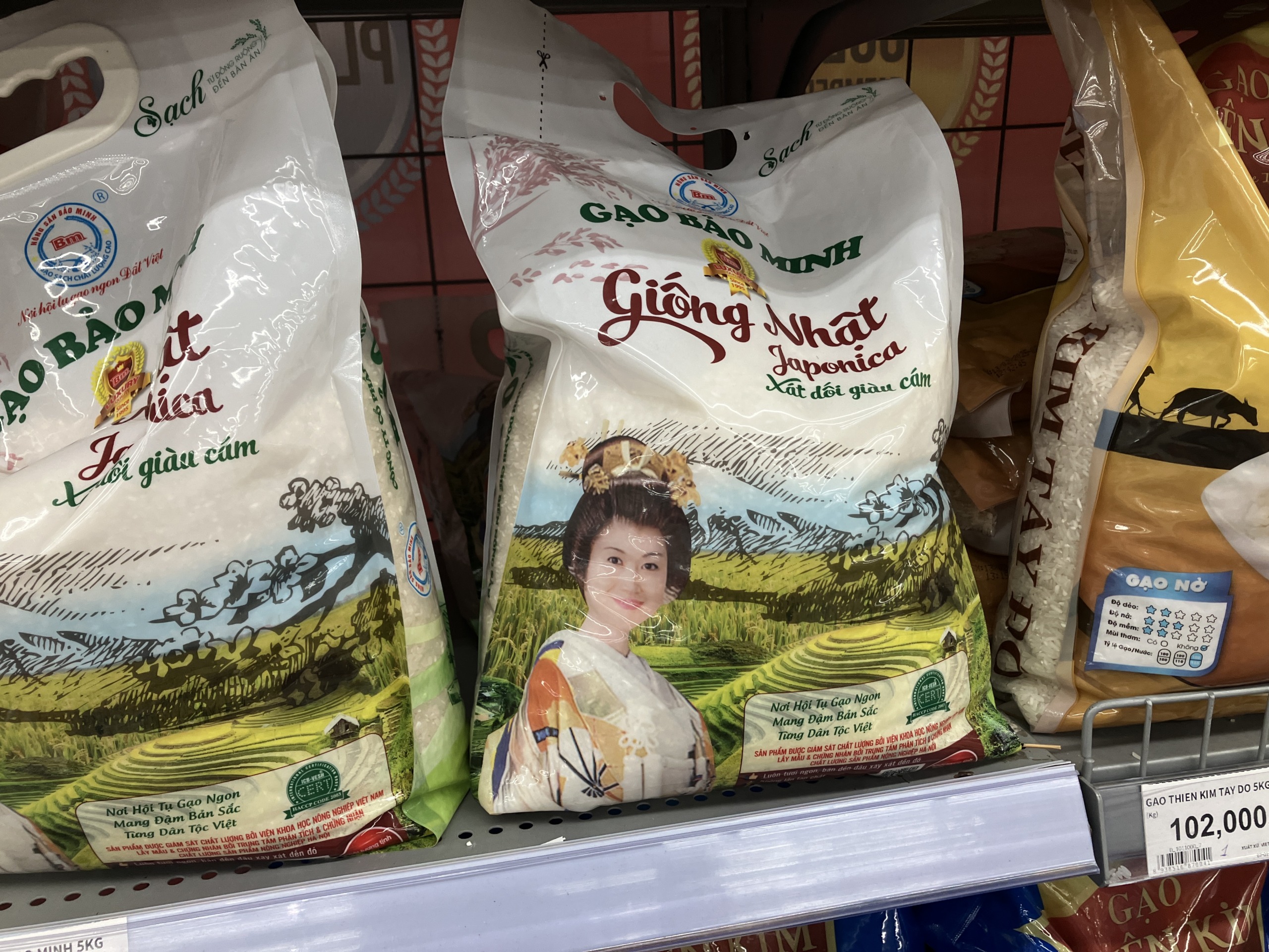 日本語はいっさい見当たりませんが「ジャポニカ」の文字。ちなみにベトナム米は日本人の口に合うお米が結構多く、世界一に認定された「ST25」も軽い口当たりで確かに特に違和感もなく美味しかった。