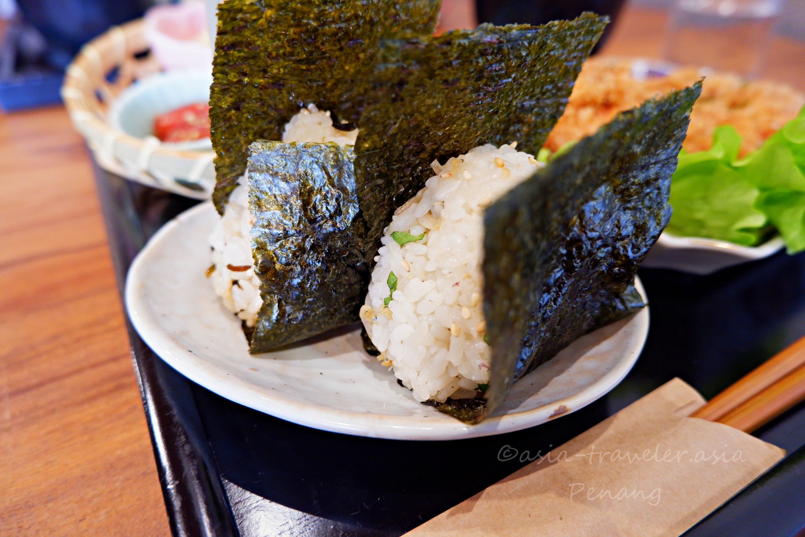仕方なく30分ほど時間を潰すのに周辺を歩いていると、おにぎり屋さんに遭遇。この日は蒸し暑さ過ぎて冷房の誘惑に負け入店