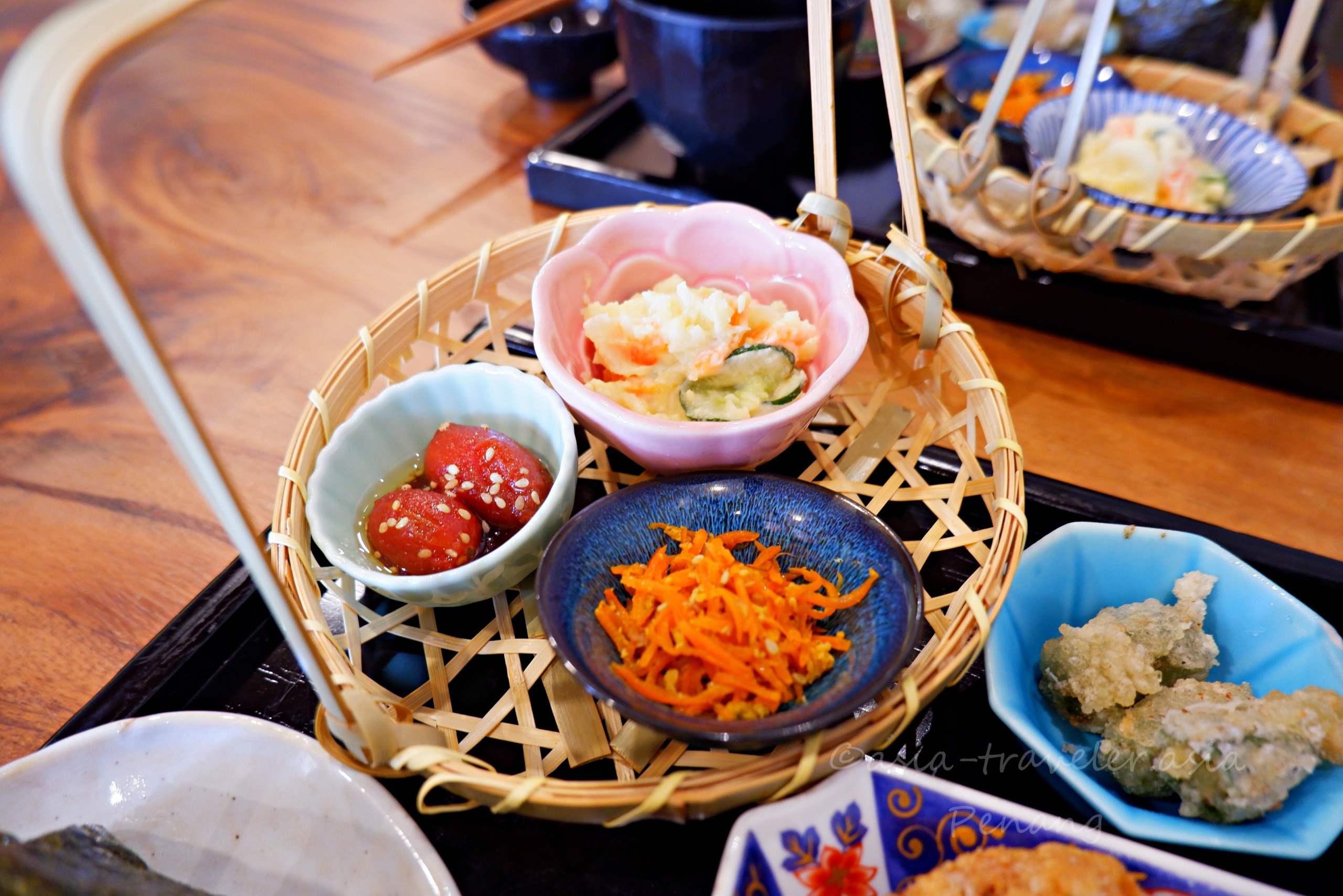 籠に盛られた副菜は視覚にはキレイに映るも、どこか素っ気ない味わい