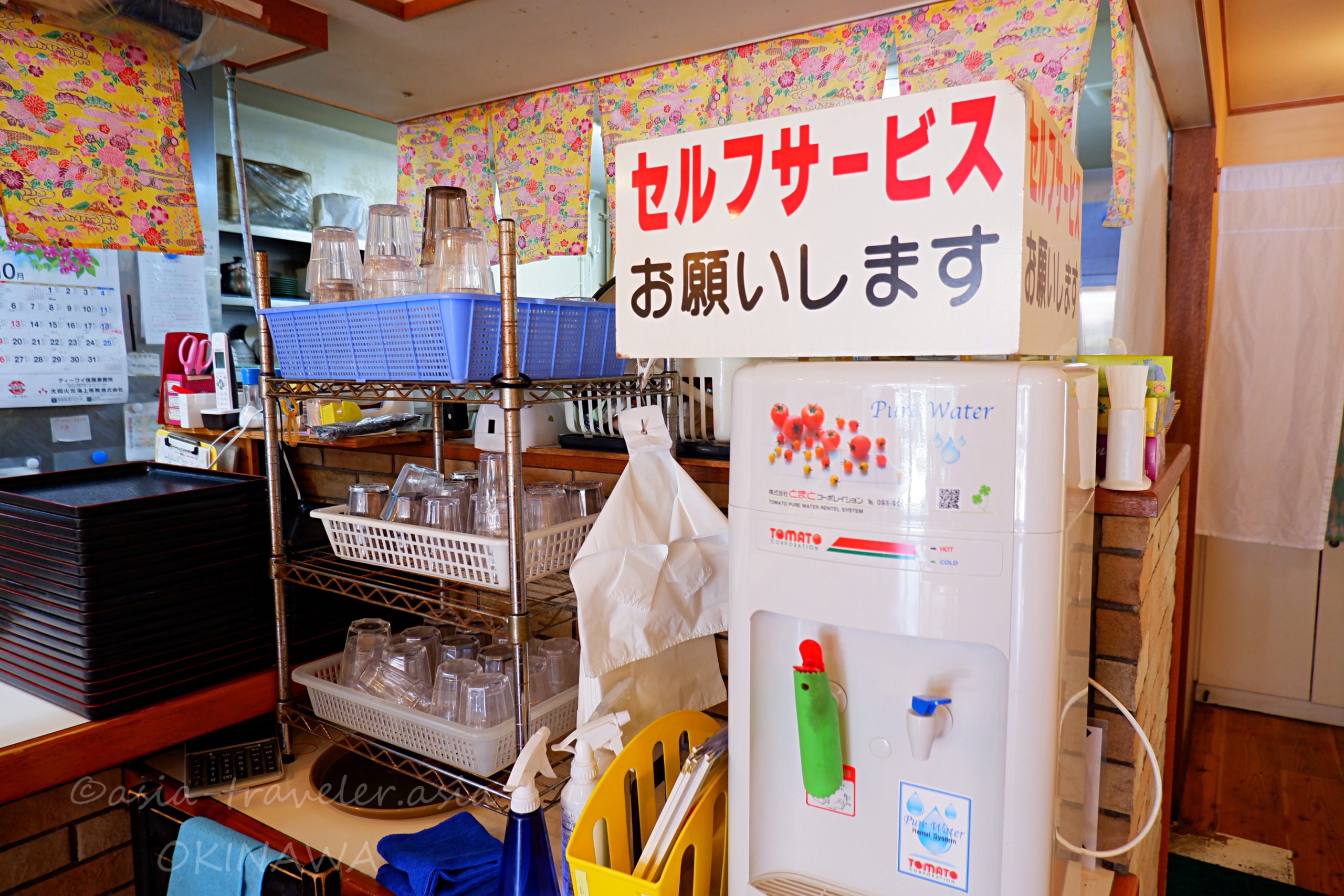 お冷は基本セルフサービスですが、スタッフが届けてくれることも
