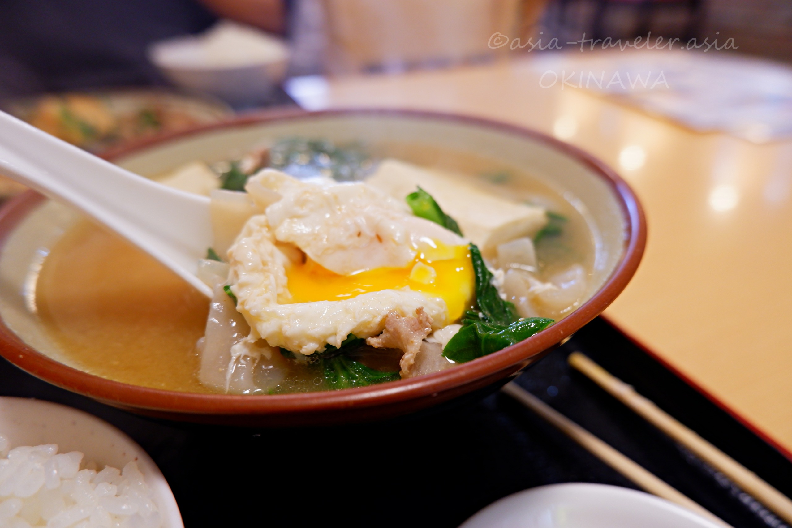 沖縄のみそ汁は、一般的な日本の味噌汁と異なり具沢山でボリューミー