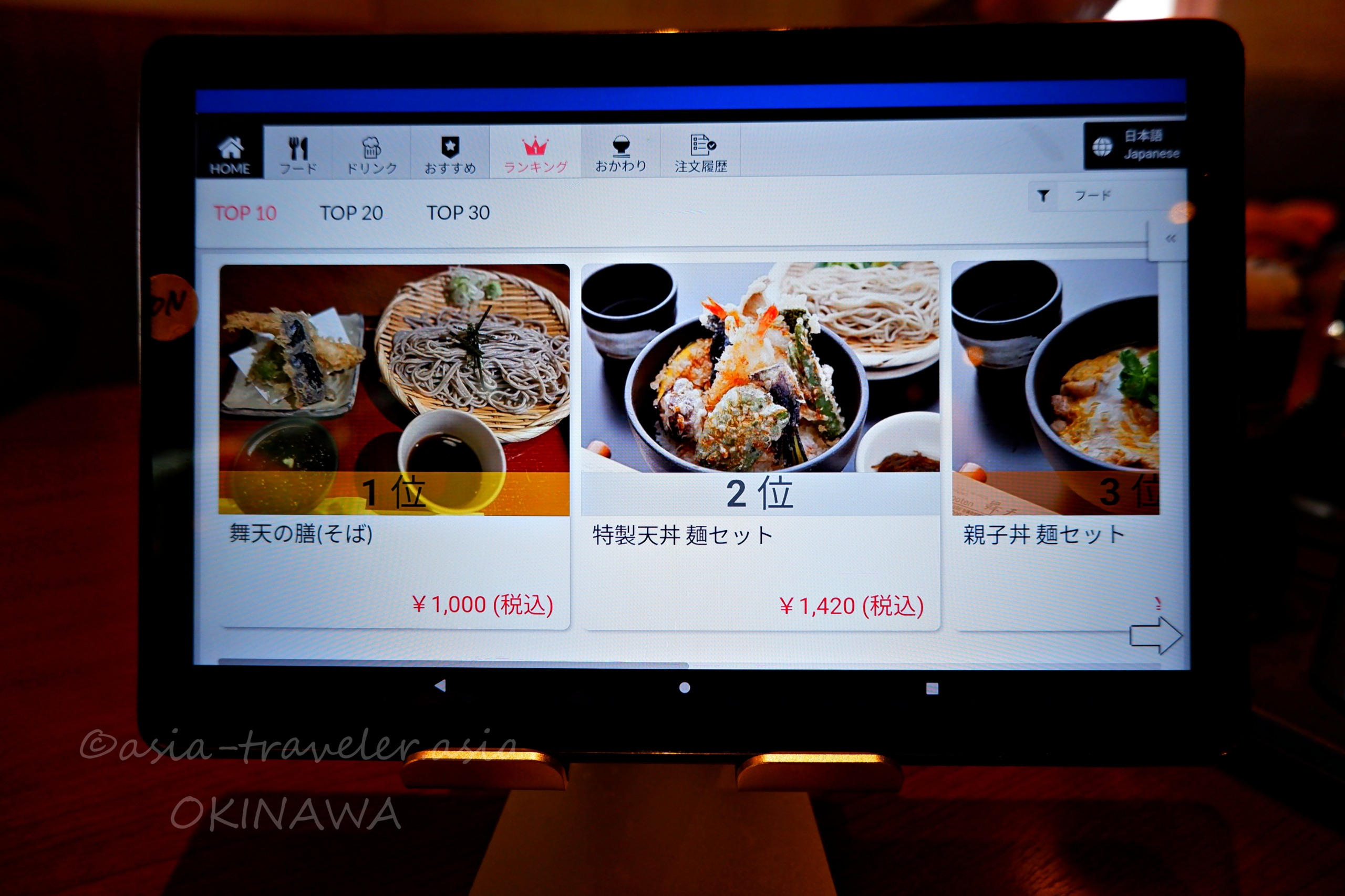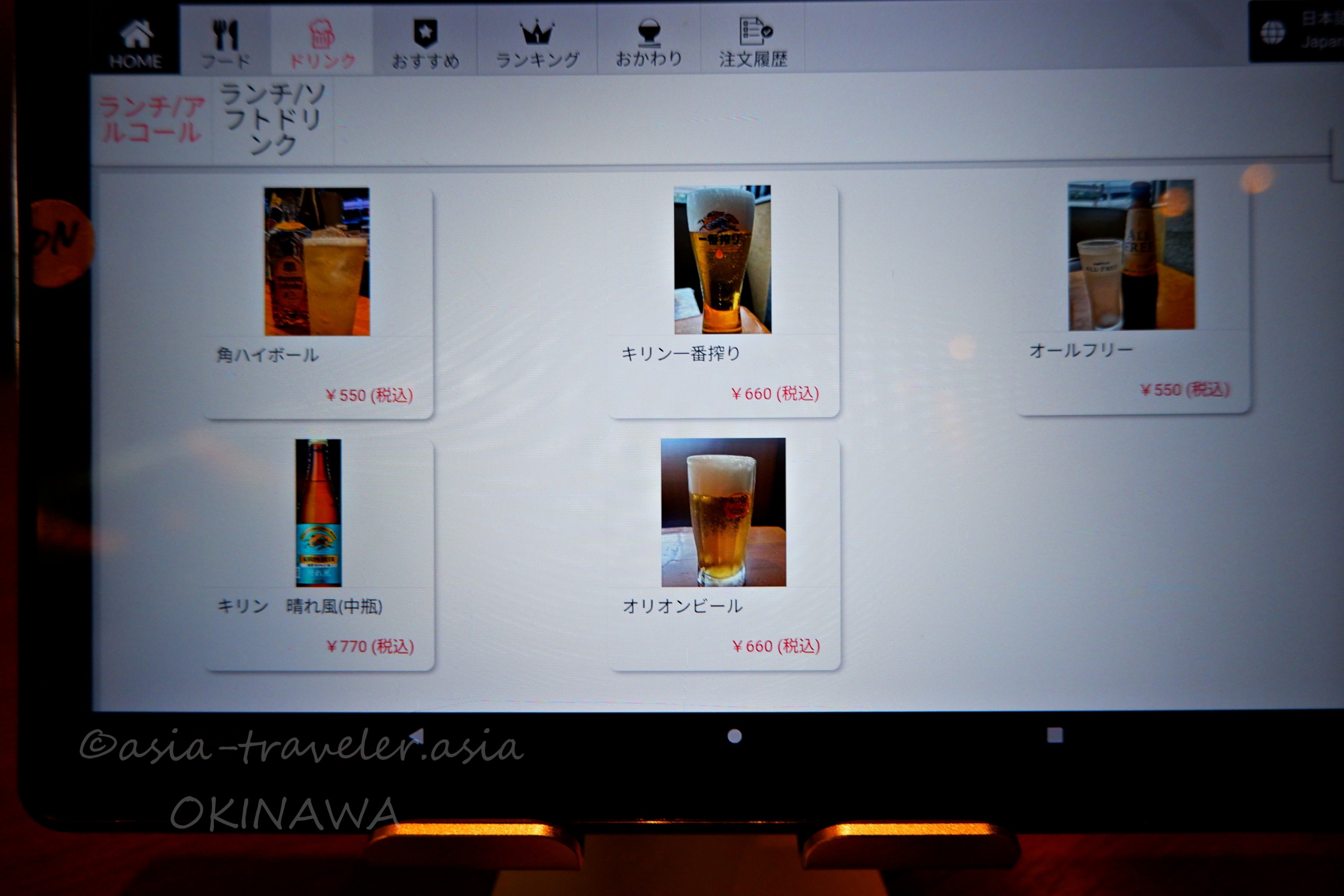 オーダー方法:各テーブルのタブレットからセルフ