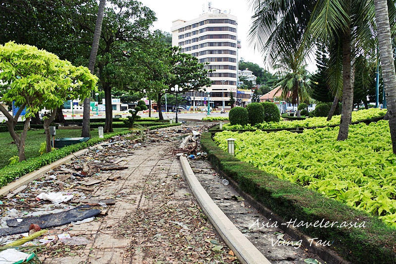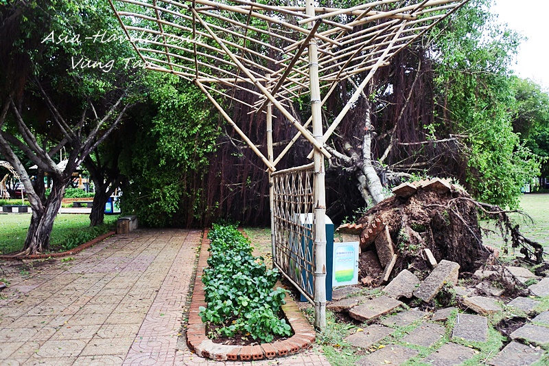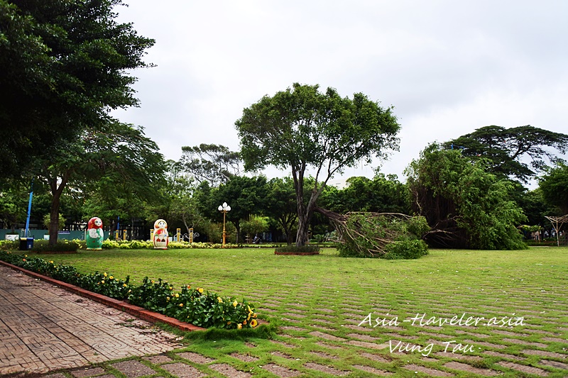フロントビーチから道路を渡りはす向かいにある公園はというと、今年のテトに設置されたマトリョーシカには被害はないけれども木が…